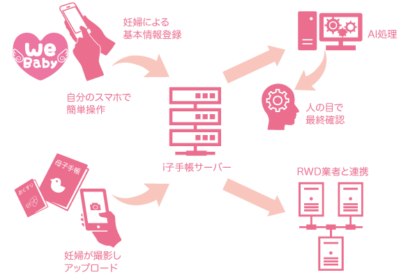 Digitizing the Maternal and Child Health Handbook (MCH Handbook) not only helps the mother and child's current health, but will also help them prepare for the future. For example, recording the mother's condition during pregnancy in preparation for childbirth could lead to preemptive medical treatment to prevent future illnesses of the mother and child. It can also be useful for new management methods, drug discovery, and personalized medicine. While maintaining the ease of use of the current booklet version of the Maternal and Child Health Handbook, we have created an easy to use system that allows it to be digitized and seamlessly linked with RWD (real world data).